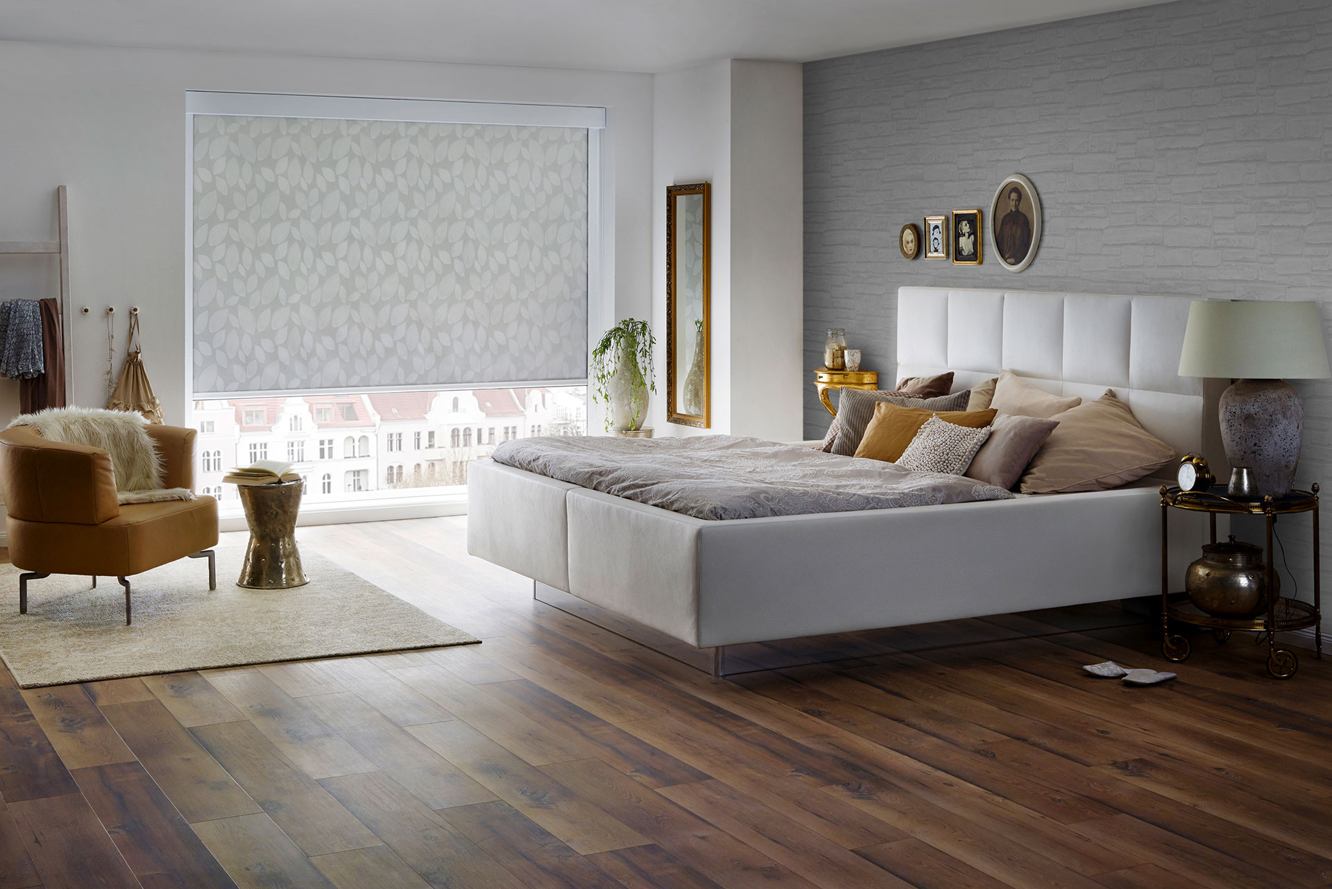 Mit dem raffinierten Doppelrollo ist es Ihnen möglich, das Licht im Raum auf eine besondere Weise zu regulieren. Es besteht aus zwei Schichten, die abwechselnd blickdichte und transparente gewebte Streifen haben. Je nach Position der Streifen lenken Sie Licht und Schatten in Ihr Zuhause.